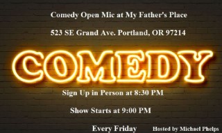 | Comedy Open Mic | 2026-01-02 8:30PM (Friday) | 523 SE Grand Ave Portland, OR | My Fathers Place | Weekly | Open Mic - Adult | Curated Mic - Open Signups (Show 1st Friday of Month w/Mic After) |